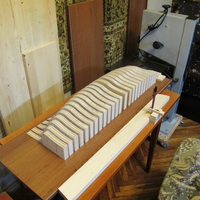 Есть куча вопросов, и перед тем как я раскрою свои листы фанеры - надо все утрести. Может и мне надо купить 10мм фанеру. построить 3Д обводы и нарезать корпус на шпации 10мм. Потом все собрать на рейке ...
