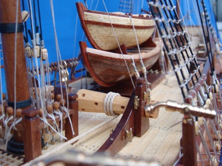 Оборудование, используемое при изготовлении модели, - сверлильно-фрезерный станок, токарник по дереву, бормашинки- прямая и угловая, шлифовальный станок. Штаги свивал вручную, их не так много и городить какие-то приспособы смысла нет. Все остальные канаты-нитки из ассортимента магазина.