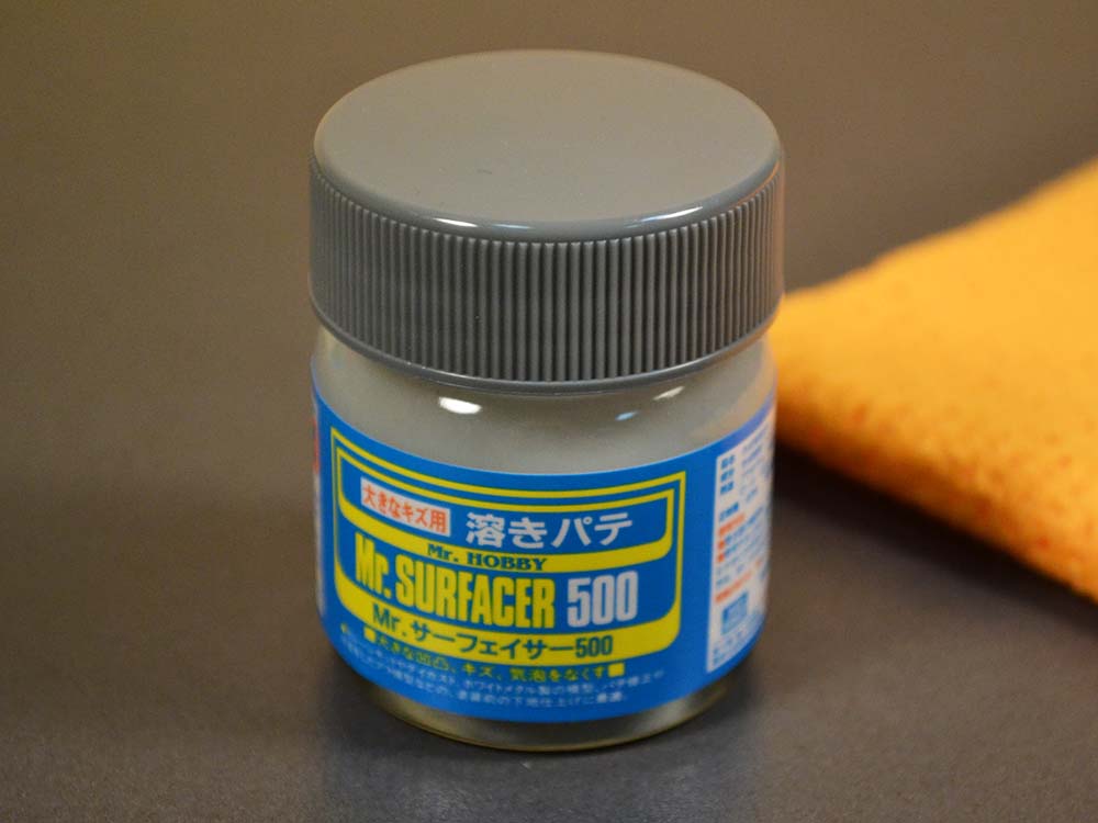 Наиболее универсальная грунтовка в линейке GSI - Mr. SURFACER 500 с самой крупной фракцией. Может использоваться вместо жидкой шпаклёвки для исправления мелких неровностей и дефектов.