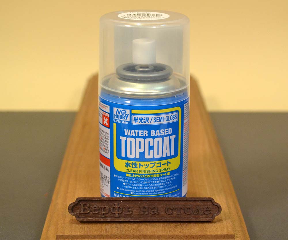 Лак у Mr. Hobby также есть, это Mr. Topcoat, Качество ничем не уступает остальным продуктам, отлично ложится на поверхность, при покраске кистью устранит неровности. Рекомендуем для защиты окрашенных моделей и в качестве подготовки поверхности к нанесению декалей.