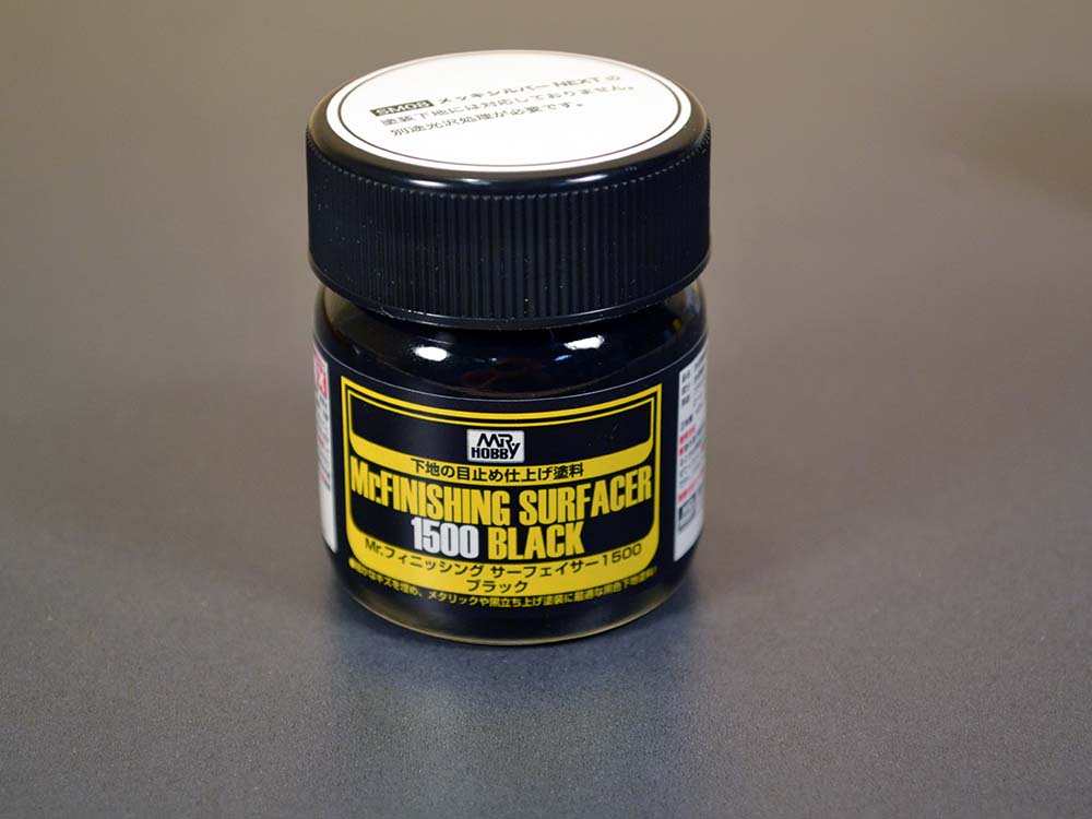 Mr. FINISHING SURFACER 1500 BLACK - это такая же финишная грунтовка, только черного цвета. Отлично подойдёт для покрытия модели или миниатюры под тёмные или металлические оттенки.