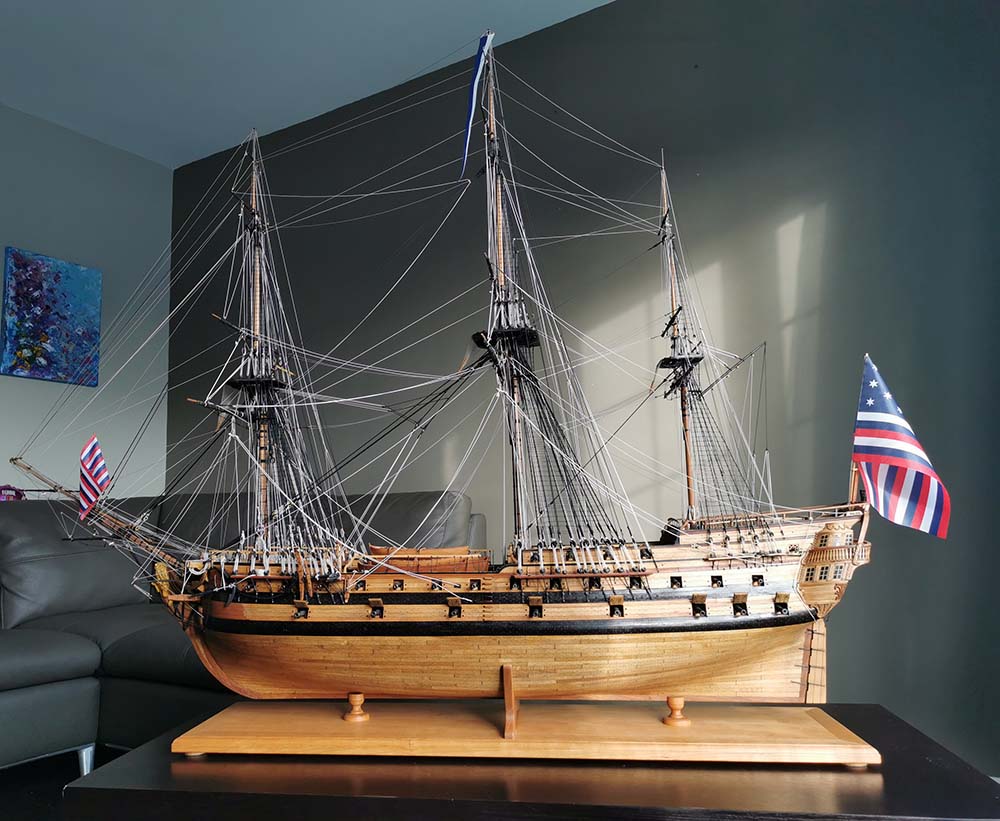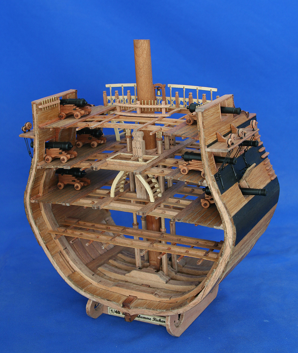 Сечение лучшей китайской модели (Bonhomme Richard) сохраняет уровень качества своего большого брата. Всё те же достоинства: разработка по чертежам Ancre, детали из массива дерева, сборка на специальном стапеле и т.д. Отдельно можно приобрести комплект внутреннего убранства для всех палуб, что значительно оживит модель.