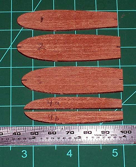 Теперь начнём "огранку" корпуса. С помощью этих шаблонов я делаю черновую шлифовку корпуса. Более точно обработаю корпус при установке латунной палубы и фальшбортов.