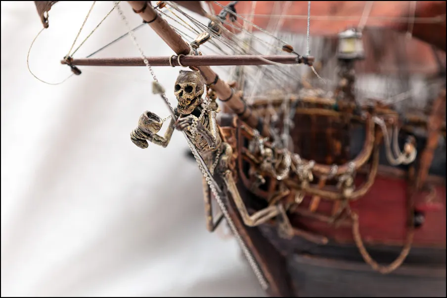 Хочу предложить вашему вниманию очередной мой самодел и как продолжение из темы киносаги "Пираты Карибского моря". На этот раз пусть будет корабль Эдварда Хича (Черной Бороды)" Месть королевы Анны" ("Queen Anne`s Revenge"). Коль уже не секрет и не домыслы, что МКА голливудские инженера и дизайнеры сотворили на базе Черной Жемчужины, то и мне пришлось в своем творчестве идти по той же тропе. Только для этого мне пришлось приобрести в "Союзпечати" восемь первых номеров журнала "Собери Черную Жемчужину" для скелета корабля, а остальное уже все сделано самим. Использованы фотографии первоисточника из интернета и кадры фильма. Фигурки, орудия и элементы декора изготовлены из термопасты Sculpey и эпоксилина. Фонари функционируют на светодиодах.