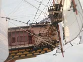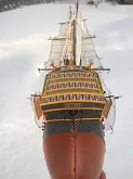 модель делалась из журнала "Maly Modelarz (2005.10-11-12)" с доработками: про грунтовано, прошпаклевано и покрашено днище корпуса. доработан такелаж корабля. паруса: пропитанная клеем пва ткань, распечатанные на принтере. юферсы и блоки сделаны из пластика. рангоут бумажный со вставленной стальной проволокой внутрь мачт и рей.