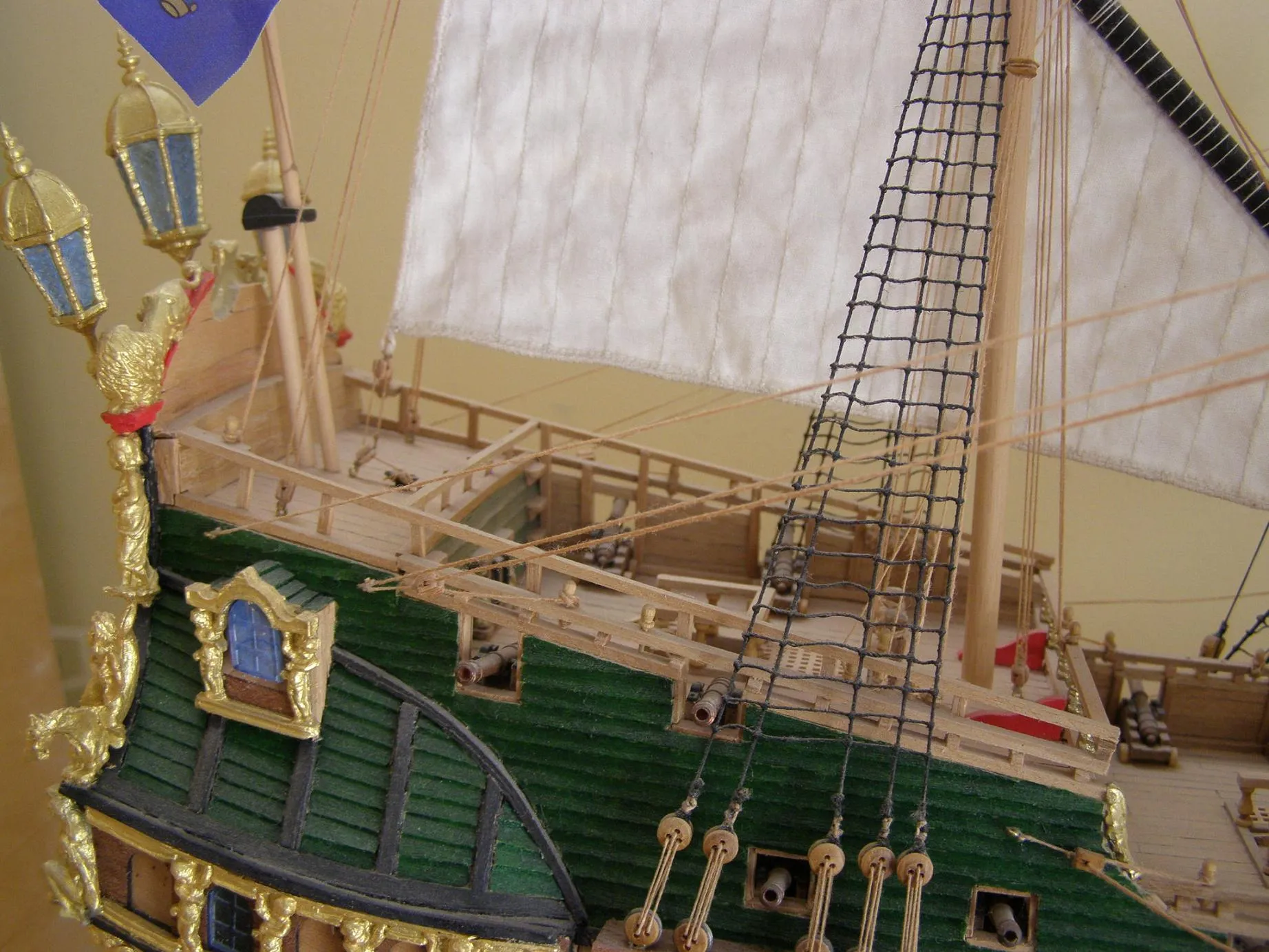 Модель выполнена из набора MAMOLI. Масштаб 1:75. Размеры 775 х 714 мм. При постройке использованы материалы только из набора. Из добавлений только самодельные паруса (в наборе их нет) и шлюпки (т.к. на литые из набора смотреть без слез просто невозможно).