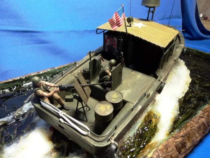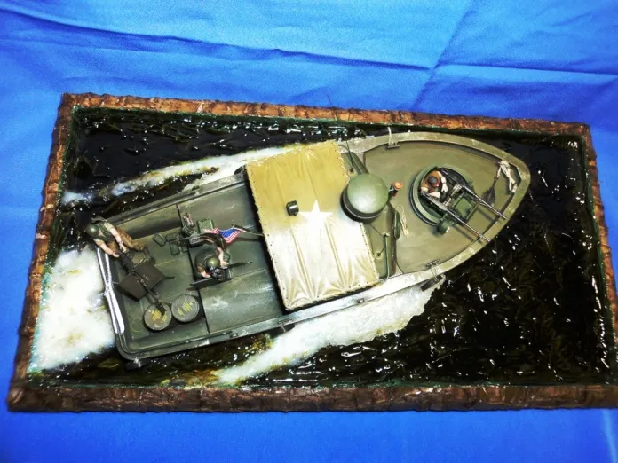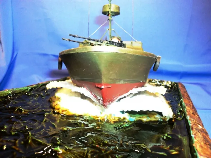 Производитель Tamiya .Грунтовка и краска Tamiya . Имитация воды: акриловый герметик и прозрачные жидкие гвозди (Момент). Фототравление Eduard.Декали самодельные.Подставка кара драцены (комнатное растение)