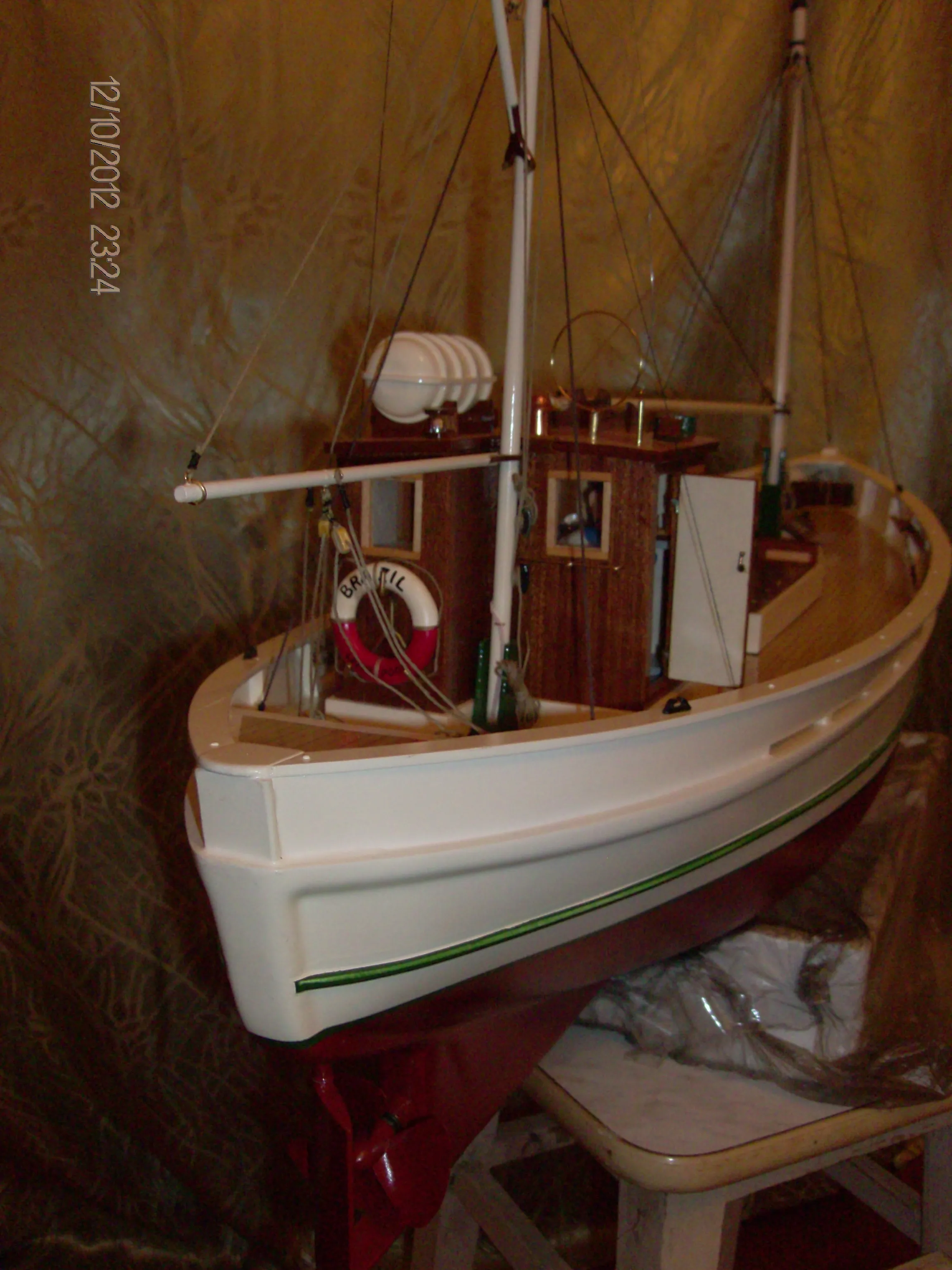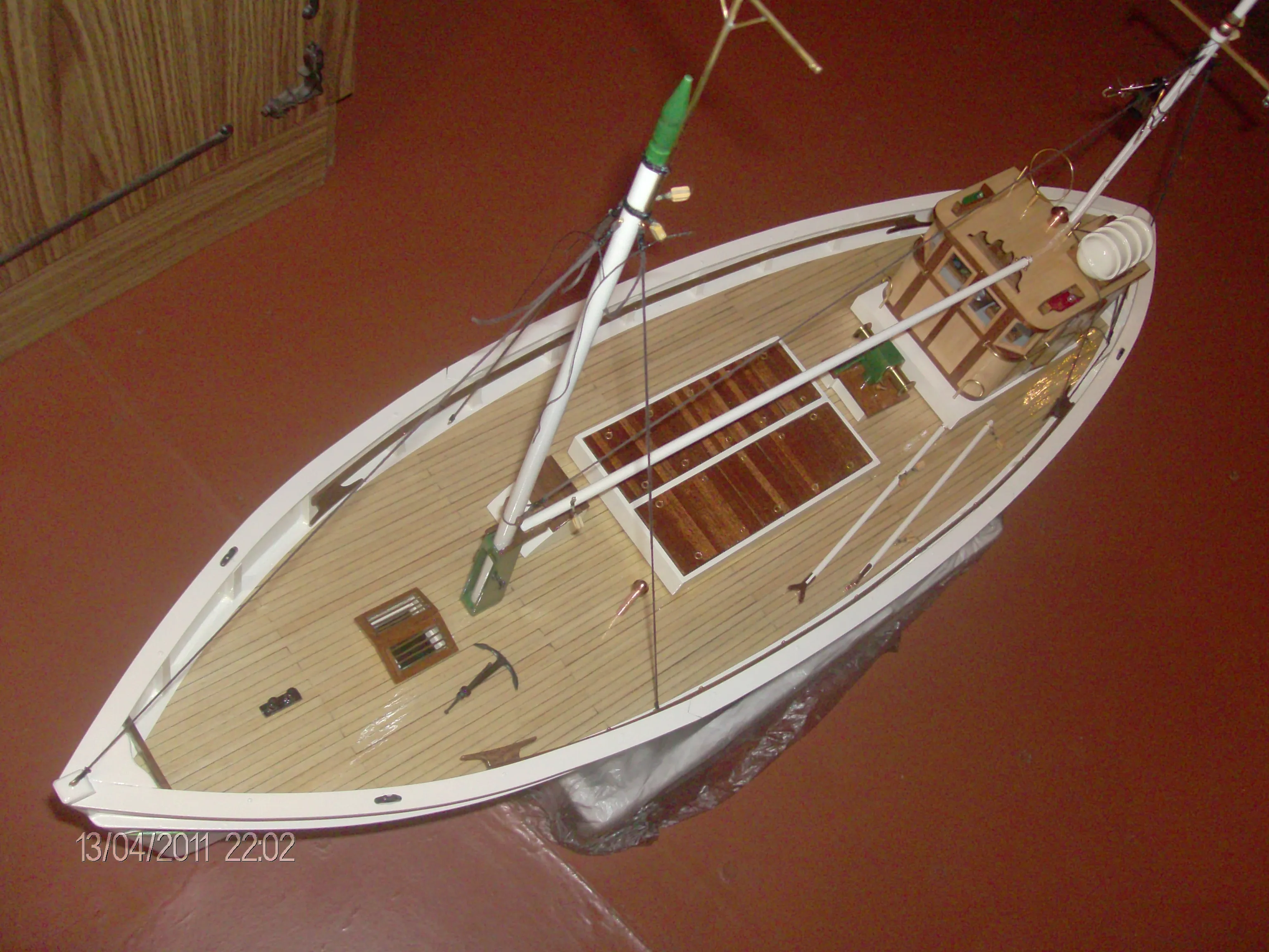 - внести несколько мелких изменений в конструкции киля, фальшборта (связанных с тем, что модель ходовая, а не стендовая) и вспомогательных элементов (вентиляционных труб, фонари на рубке для ночного лова рыбы убрал, проводку стоячего такелажа изменил и т.п.);