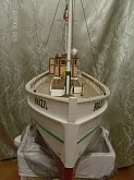 На воде модель держится прекрасно - водоизмещение 6 кг. позволило разместить балласт на днище (примерно 1,5 кг.) - при довольно сильном ветре и волнах «гонял» кораблик на Волге. Мореходность модели соответствует качествам оригинала - практически непотопляемая и неопрокидываемая посудина получилась. К сожалению, не сделал ни одной фотки «на плаву». Модель смотрится довольно реалистично, хотя точные измерения свидетельствуют, что масштаб в некоторых деталях нарушен (к примеру, высота рубки в переводе на «оригинал» составит около 180 см., а дверей в нее - и вовсе 160 - маловато для рослых британцев, кмк)