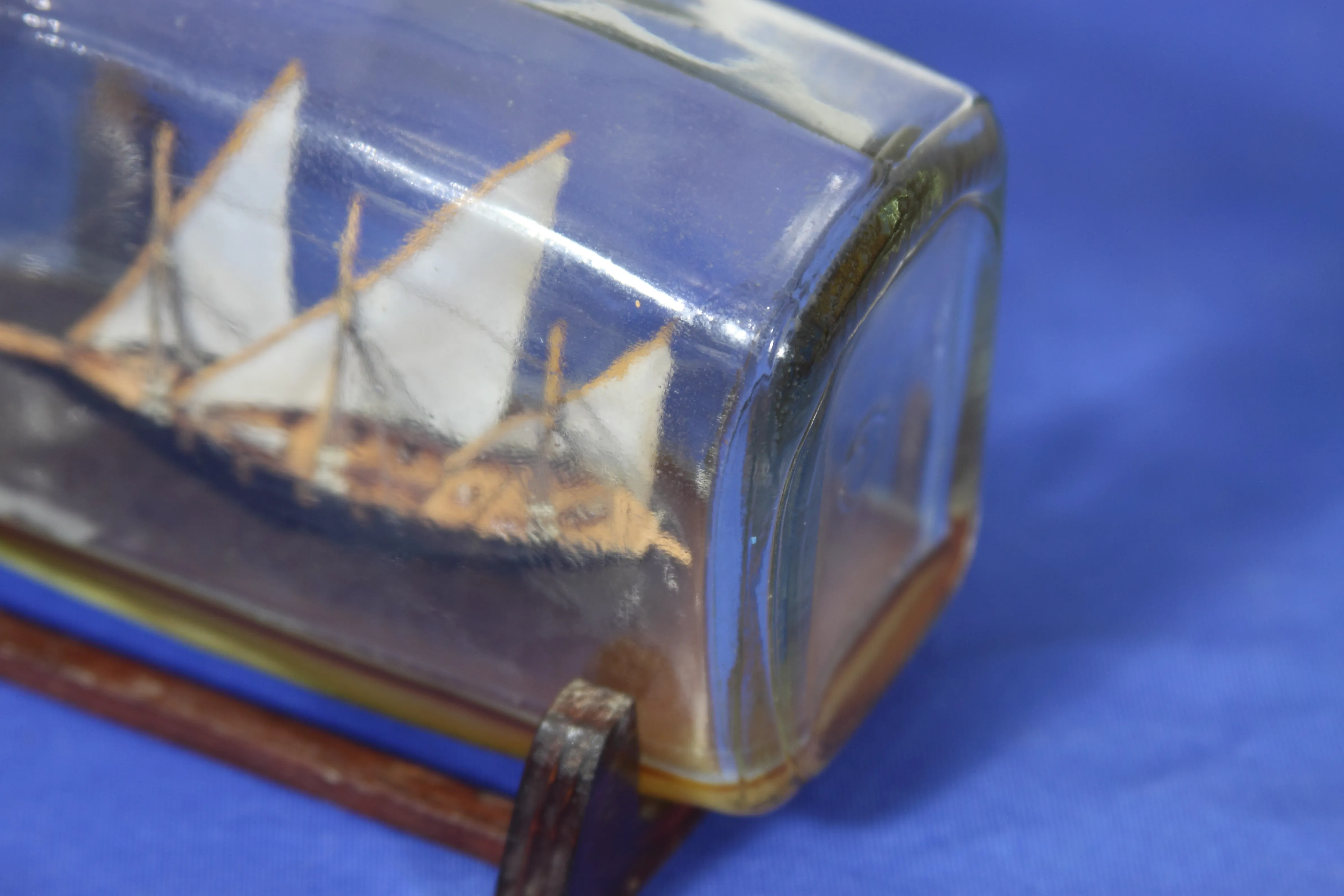 Сразу хочу извиниться за качество стекла. Модель была сделана как подарок еще в прошлом веке. Корпус изготовлен из сосны. Мачты-бамбук. Пушки из аллюминиевой проволоки ,покытой желтым лаком. В качесте воды истользовал эпоксидную смолу, подкрашенную чернилами.