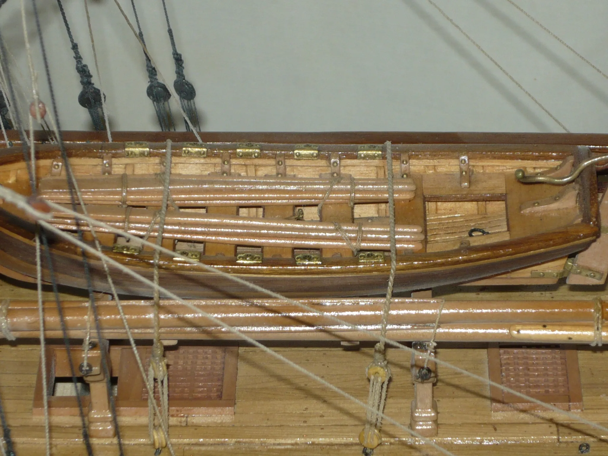 Вооружение 24-х фунтовые карронады,но ни где не нашел информации,какие именно. По-этому при изготовлении карронад использовал альбом Горобовскогго.