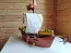 При изготовлении использовались различные виды картона и бумаги. Основные детали выполнялись из гофрокартона со сборкой на термоклее. Парус и флаги из ткани. Покрытие акриловыми красками и лаком.