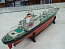 Длина: - 595мм Ширина: - 78мм Высота борта: - 47мм Осадка: - 34мм Модель изготовлена по чертежам журнала «Моделист-конструктор» в масштабе М1:285. Выполнена по классической технологии. Корпус из стеклопластика. Палуба и грузовые люки из фольгированного текстолита. Надстройка паяная из жести. Деталировка из разнообразных подходящих материалов – латуни, медной и стольной проволоки, пластика. Окрашена нитрокрасками. Модель ходовая, изготавливалась для соревнований в классе ЕН-600.