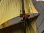 С парусов были убраны все крепления для сборки без клея, как не соответствующие прототипу. Крепил паруса клеем и нитками. Для такелажа использовались нитки обычные и из бантика. Сделал имитацию обвязки палубных орудий, шлюпки. Вырезал отверстие для руля в корме. Высверлили дула пушек. Кормовой балкон дополнил арками.