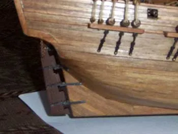 С деталями в наборе расклад такой. Мне не хватило булавок штук 20, из медной проволоки, с колечками на конце 15 мм длинны. Да не хватило еще черненьких таких шпилек (битсы), длинной 6мм, штук 16. Да не было одной деталюшки, которая мачты крепит на марсе (эзельгофты), сделал ее сам. Но и лишнего ничего не осталось, все впритык. По крупному претензий нет, все нормально.