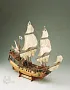 Модель корабля из дерева имеет декоративное оформление, которое является типичным для Королевского флота того периода.Уже вырезанные деревянные детали составляют основу наборной конструкции корпуса с двойной обшивкой из липы и ореха. Набор имеет две больших кассеты с мелкими деталями, в одной из которых лежат блоки и юферсы, заготовки для решеток, крышки и петли пушечных портов, утки, петли руля, якоря и т.д. Отличная большая деревянная шлюпка нуждается лишь в чистовой обработке и изготовлении интерьера.