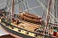 Хорошая проработка палубных элементов, люков, ящиков, решеток, шпиля – всё это на уровне последних и лучших разработок Amati. Ниже ватерлинии корпус брига можно обшить прилагаемыми в наборе медными листами, причем медная обшивка очень высокого качества, с имитацией гвоздей. Теме медной обшивки посвящена целая глава в инструкции по сборке. На этой модели впервые штатно выполнен механизм движения руля от штурвала. Т.е., поворачивая штурвал, через систему блоков будет поворачиваться и руль.