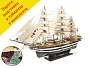 В наборе прилагаются готовые паруса, а завершает модель подставка и табличка с названием.
