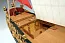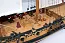 На палубах лазером нанесена разметка центральной линии и люков, что облегчает выполнение настила. В носовой части модели парусника находится брашпиль, который собирается из надетых на ось колец, а затем зашивается размеченными рейками для получения восьмигранного сечения с квадратными отверстиями. Стоит ли после этого говорить о других элементах, к которым японский изготовитель подошел столь же скрупулезно. Декор яхты состоит из множества литых украшений, латунного фототравления и вырезанных лазером деревянных элементов. Здесь стоит отметить, что в этой модели корабля фирма Woody Joe почти не применяет фанеру, все видимые детали вырезаны или изготовляются из цельного дерева. Вооружение яхты состоит из восьми литых пушек на деревянных лафетах.