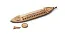 Интересная наборная конструкция корпуса модели корабля обшивается как изнутри (настил), так и снаружи. Изнутри используются рейки танганики шириной 3мм, первая внешняя обшивка корпуса выполняется рейками липы 1х3мм, вторая рейками ореха 0,5х3мм. Специфичные для канонерки обводы корпуса завершаются интересной конструкцией штевней. В носовой и кормовой частях лодки на поворотных площадках устанавливаются пушка и карронада - страшная разрушительная сила. Фок и гротмачта модели сильно наклонена вперед, две реи несут латинские паруса. По этой причине такелаж будет выполнять интересно и не очень сложно. При этом используются нити трех диаметров от 0,25 до 0,75мм. Два паруса даны пропечатанными на ткани, но можно их сделать и самостоятельно. Подставка в виде стапеля входит в комплект. Хорошие чертежи на 4-х больших страницах и инструкция на 16-ти страницах великолепно соответствуют высокому уровню детализации модели.