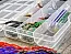 Маленький и компактный пластиковый контейнер с 11-ю отделениями высотой примерно 25 мм. Контейнер плотно закрывается крышкой, которая фиксируется защёлкой, что исключает случайное открытие и позволяет переносить его в любом положении, как вам удобно. Весь контейнер полупрозрачный, благодаря чему видно, что там лежит.