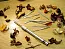 Набор из 12 плоских алмазных надфилей шириной 6, 4 и 2 мм. Надфиля каждой ширины представлены четырьмя разновидностями, отличающимися зернистостью: 120, 180, 300 и 400 грит. Длина рабочей поверхности алмазных надфилей составляет 30 мм, полная длина сменного надфиля 70 мм. Алюминиевая рукоятка длиной 120 мм и диаметром около 10 мм имеет латунную цангу для фиксации надфилей и клипсу как у шариковых ручек, чтобы закрепить ее в кармане пиджака или рубашки.