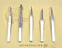 Пинцет с плоскими кончиками, расположенными под углом, предназначен для захвата плоских деталей (из фольги, бумаги, картона, ткани), в том числе и переводных декалей. В нашем деле применяется для захвата медных пластин обшивки корпуса, парусов и т.д. Плоские кончики пинцеты имеют форму лопатки и не имеют насечек, таким образом они не оставляют следов на мягких деталях, но таким пинцетом сложно удержать твердые предметы неправильной формы. Материал пинцета – нержавеющая сталь. Длина инструмента около 11 см. Ширина губок 6 мм