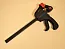 Эта струбцина F-типа изготовлена из прочных материалов, что делает её идеальной для тяжелых работ. Зажим осуществляется с помощью курка, а ослабление зажима или предварительная подводка губок выполняется путем нажатия на специальную кнопку, которая снимает фиксацию подвижной губки. Центральная направляющая выполнена из стали, фиксаторы из твердого пластика, а защитные насадки из довольно мягкого пластика. Подходит для профессионального и домашнего использования.