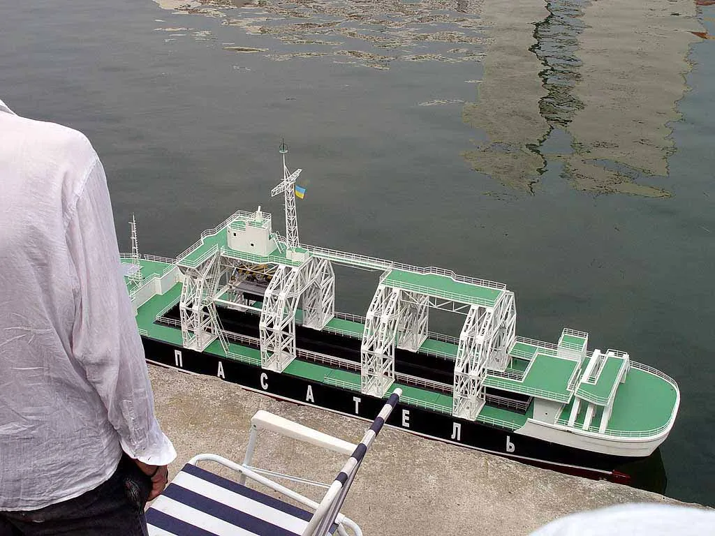 Чемпионат проходил на пруду в парке Дружбы у метро 'Речной вокзал' с 30 июля по 5 августа 2004 года. Участвовали команды Белоруссии, Казахстана, Польши, России, Украины, Чехии. Протоколы чемпионата вы можете найти на сайте NAVIGA. Выступление украинской команды на модную тему борьбы с терроризмом. Сценарий выступления таков: к исследовательской базе с глубоководным аппаратом подходит вражеская подводная лодка 'Пиранья', которая выпускает двух пловцов для закладки зарядов на глубоководный аппарат. После диверсии для уничтожения подводной лодки террористов вызывается военный корабль, который подлодка успешно атакует и повреждает. Корабль кренится на борт и к нему на помощь спешит спасательное судно. В это время маленький батискаф проводит исследование поврежденного и затопленного глубоководного аппарата. После оценки повреждений он их исправляет. Затем приходит большой катамаран 'Коммуна', которая поднимает глубоководный аппарат, грузит его на баржу с целью последующей транспортировки в док для ремонта. Всего в выступлении участвуют семь моделей: глубоководный аппарат, батискаф, подлодка 'Пиранья', боевой корабль, спасательное судно, большой катамаран 'Коммуна' и баржа. |