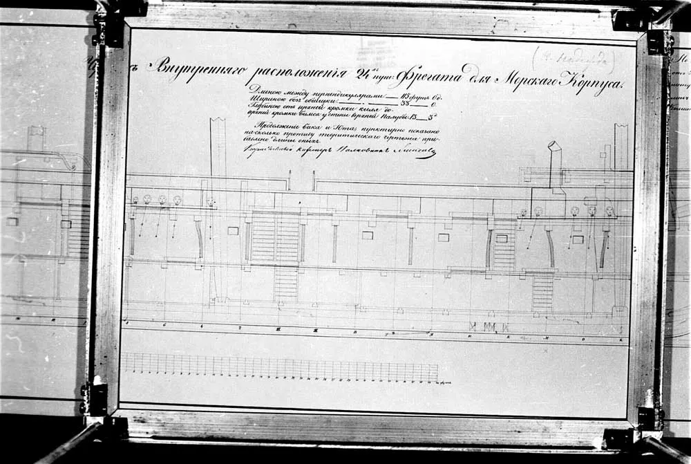 Чертеж юта и форкастеля 24-х пушечного фрегата для Морского Корпуса. 1845 год. |  Чертеж внутреннего расположения 24-х пушечного фрегата для Морского Корпуса. 1845 год. |  Чертеж внутреннего расположения 24-х пушечного фрегата для Морского Корпуса. 1845 год. |