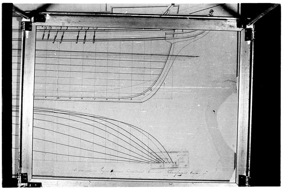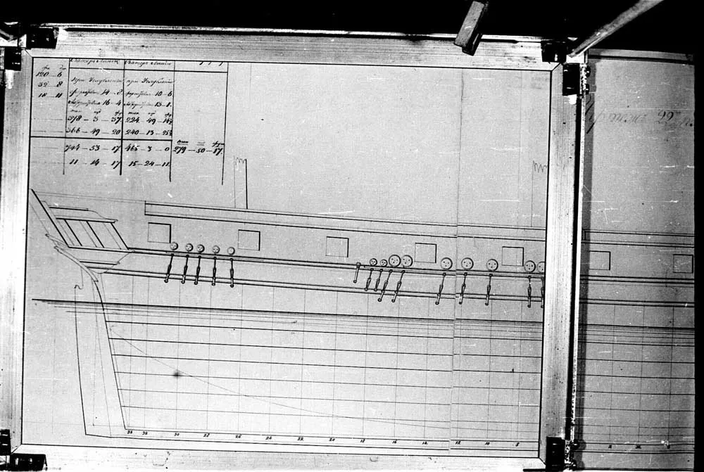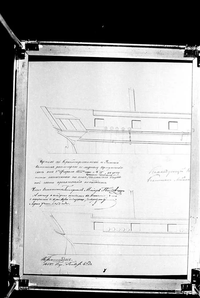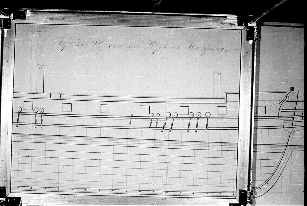 Чертеж 22-х пушечного корвета "Наварин". 1832 год. |  Чертеж 22-х пушечного корвета "Наварин". 1832 год. |  Чертеж 22-х пушечного корвета "Наварин". 1832 год. |