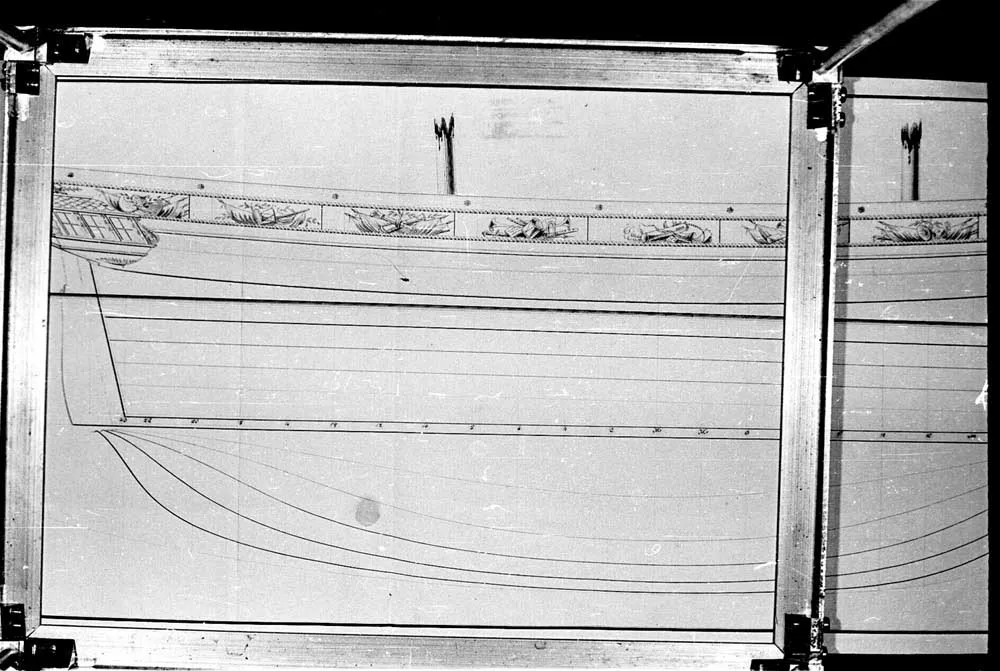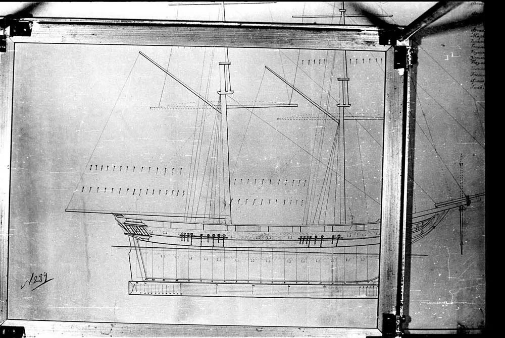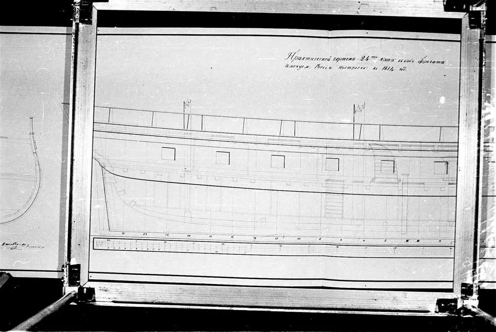 Практический чертеж 24-х пушечной яхты в виде фрегата именуемой "Россия". постр. 1814 год. |  Практический чертеж 24-х пушечной яхты в виде фрегата именуемой "Россия". постр. 1814 год. |  Внутреннее расположение 24-х пушечной яхты в виде фрегата именуемой "Россия". построен 1814 год. |
