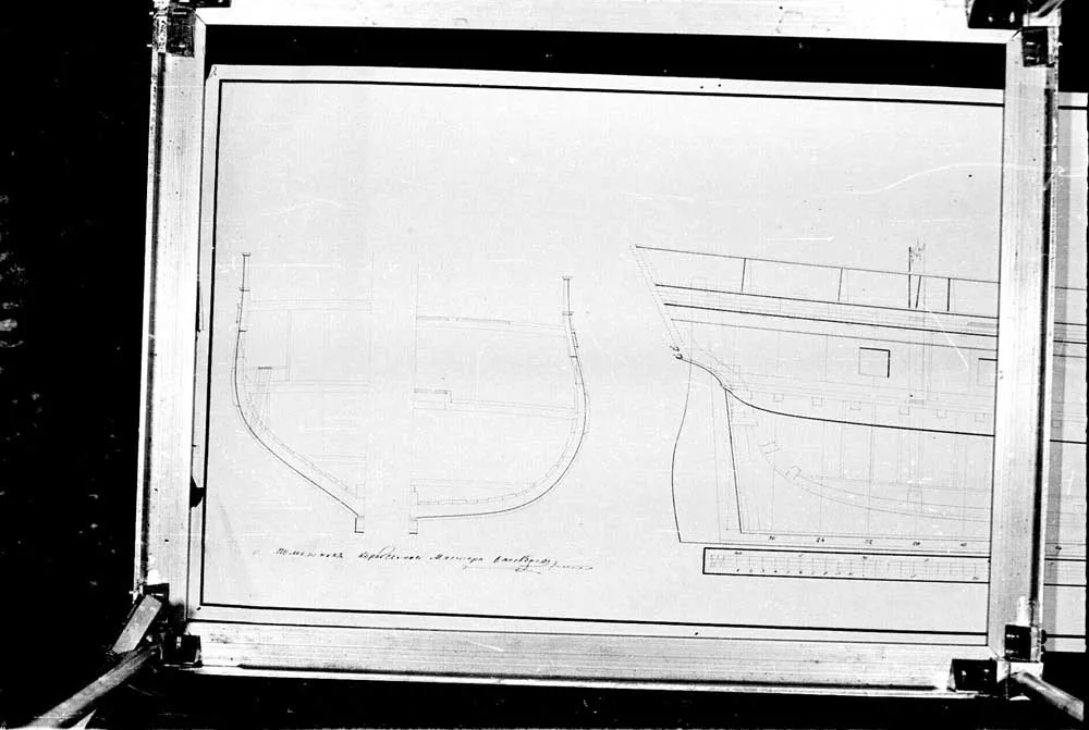 Чертеж шлюпа "Открытия". 1819 год. |  Чертеж шлюпа "Открытия". 1819 год. |  Чертеж шлюпа "Открытие" |
