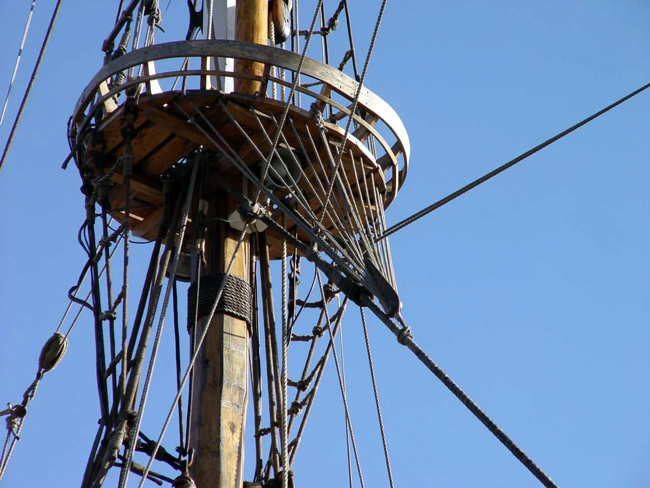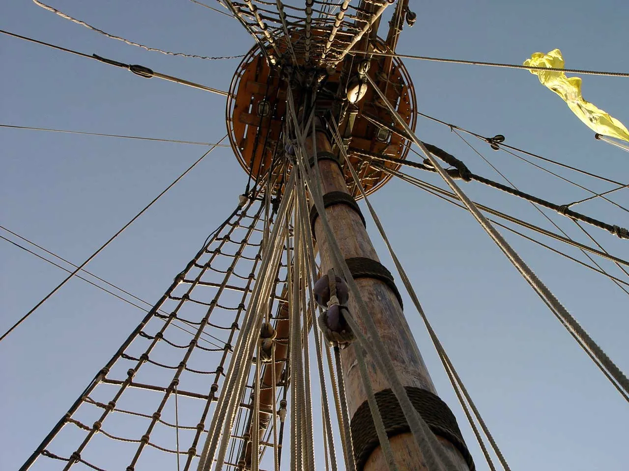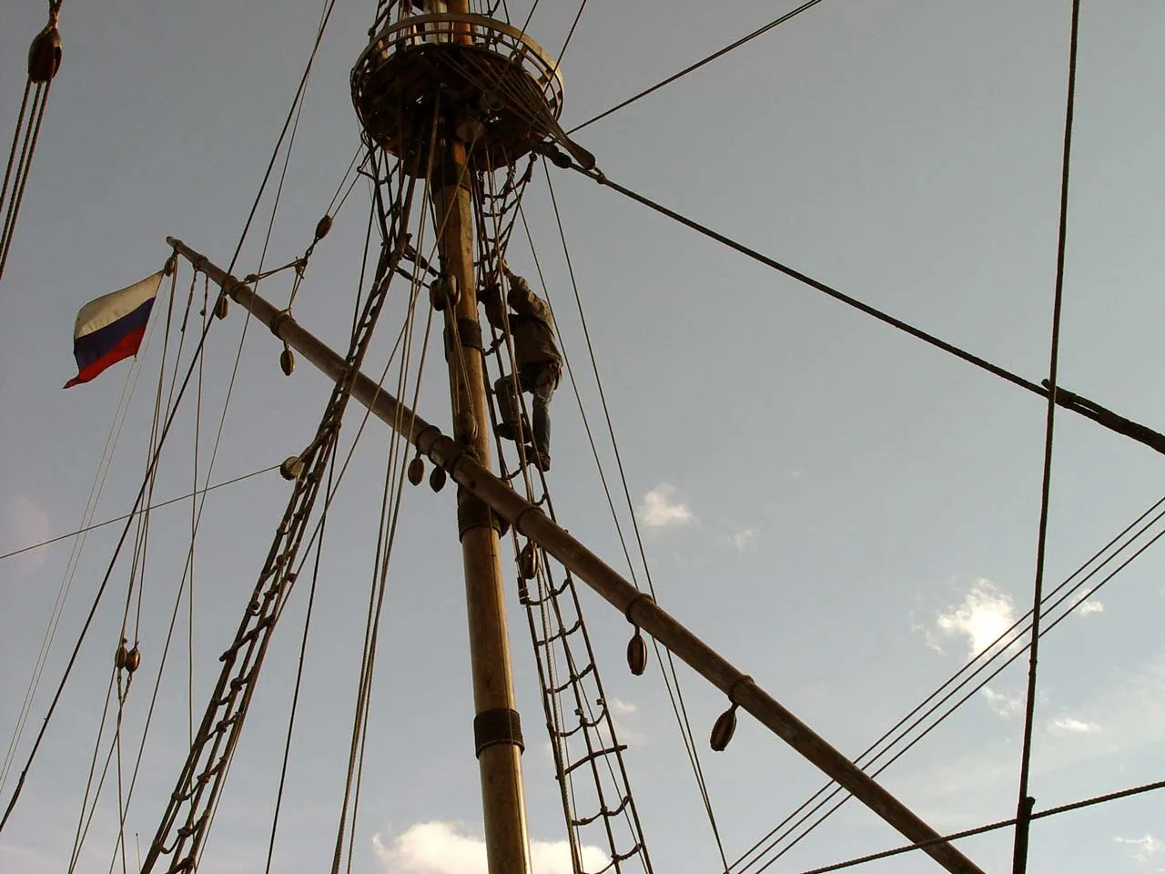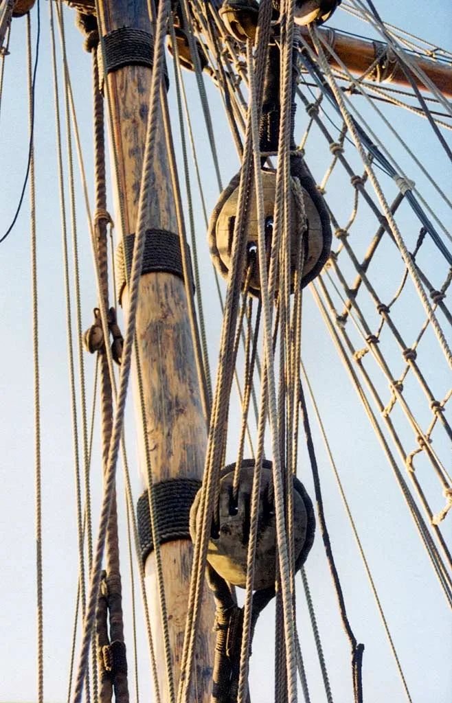 Бизань мачта. |  Пяртнерс фок-мачты, вулинги на мачте, гардель блоки. |  Талреп грота-штага, вулинги на фок-мачте. |