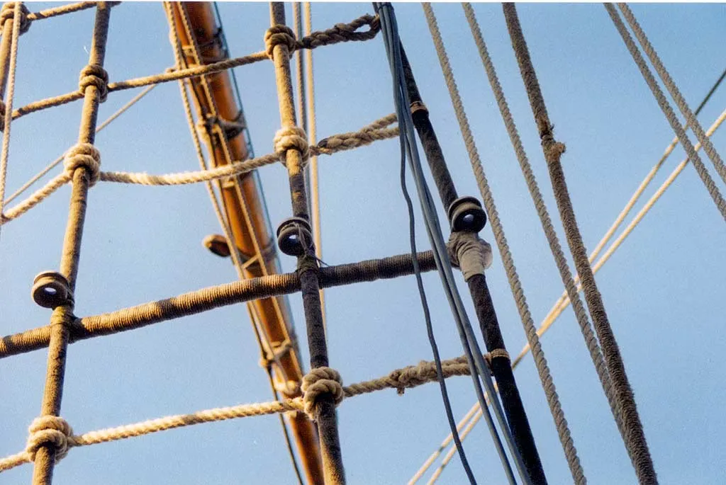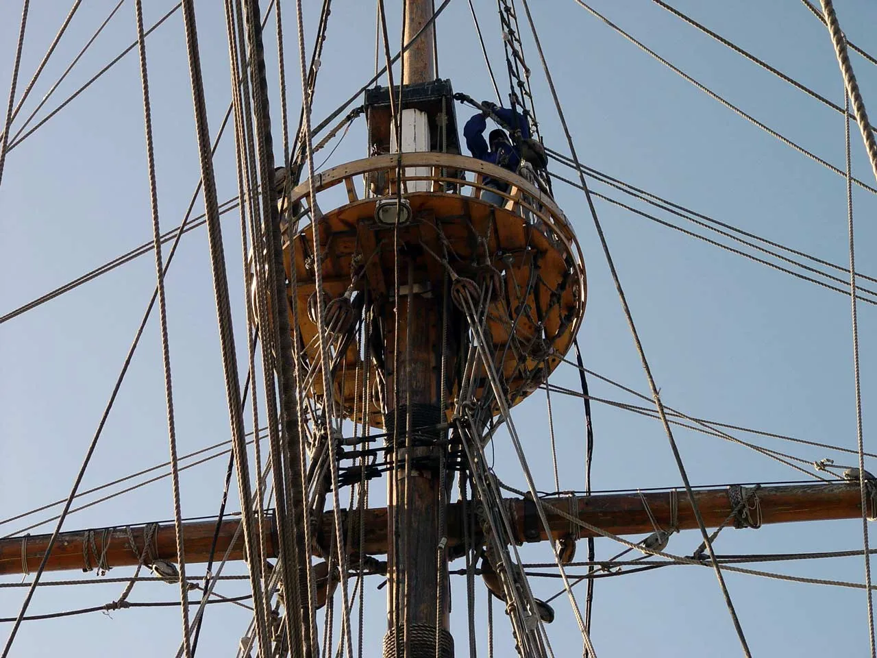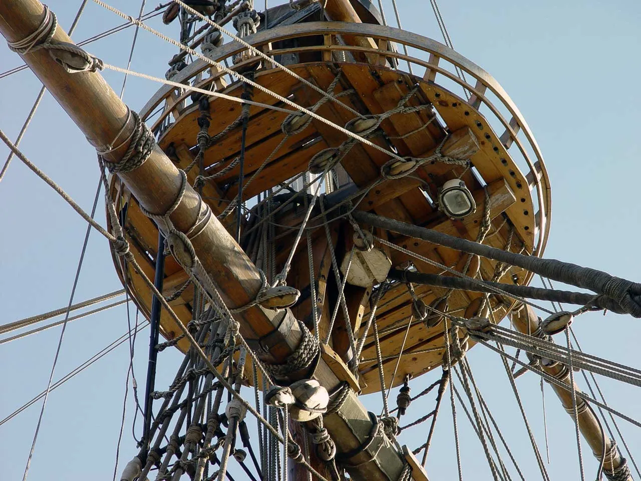 Бизань мачта. |  Пяртнерс фок-мачты, вулинги на мачте, гардель блоки. |  Талреп грота-штага, вулинги на фок-мачте. |