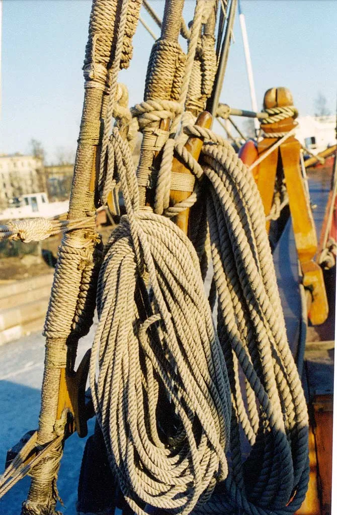 |  правильная вязка выбленок на вантах, вант-клотни |  бухты на кофель-нагельных планках |